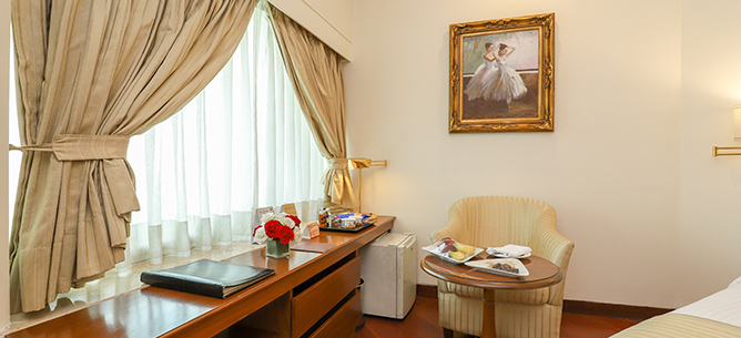 Our recently renovated Deluxe Room is a real retreat after a tiring journey. Modern décor, plush bedding and a variety of amenities make this the preferred choice.